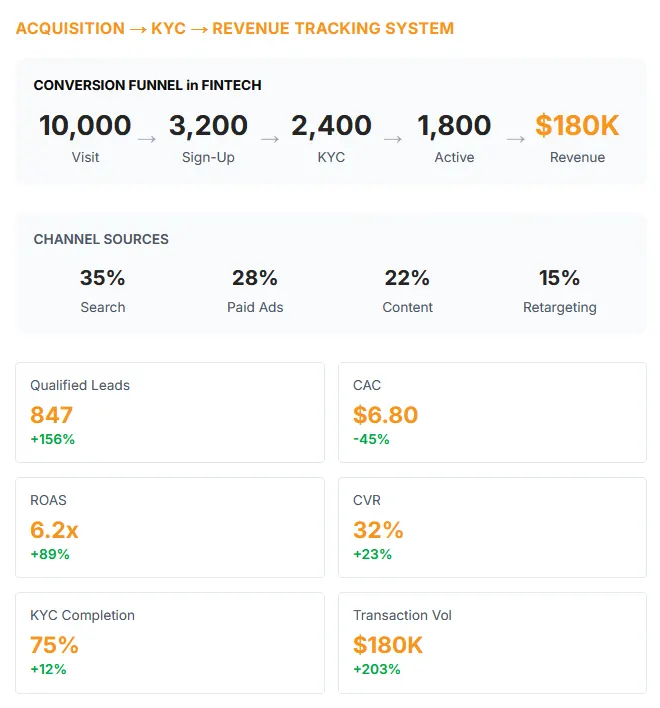 Measurable growth powered by qualified lead data, CPL efficiency, pipeline impact, and real FinTech performance benchmarks.