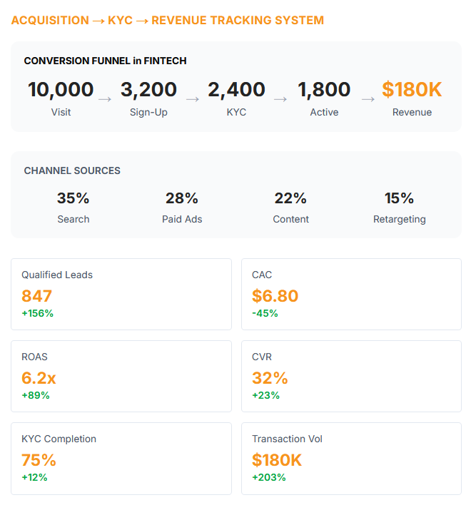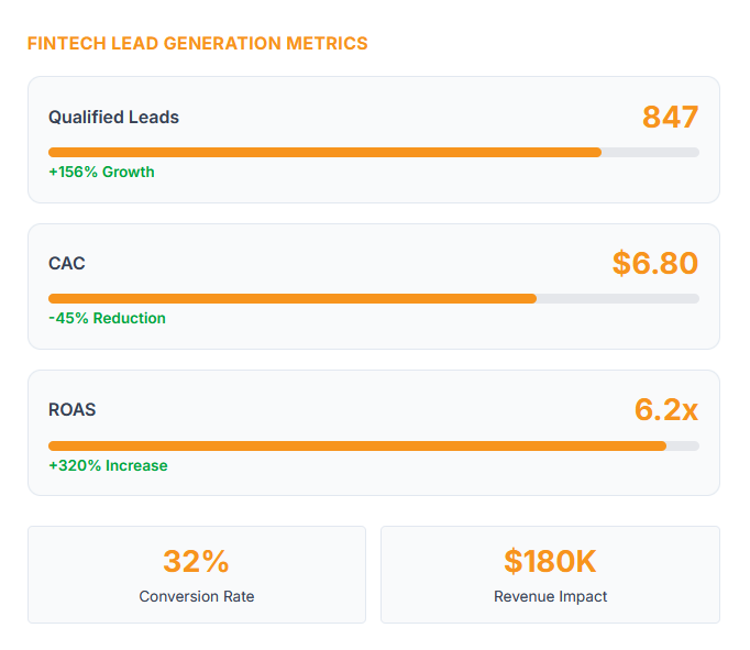 We help FinTech companies acquire high-intent users, generate qualified leads, and scale revenue globally. Every strategy is measured against lead quality, CAC, ROAS, and pipeline impact.