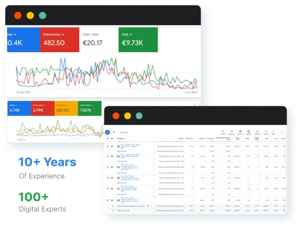 We learn your goals, budget, ICP, and funnel. Free Google Ads consultation from a Google Ads agency / SEM company with Certified Google Ads Specialists and Google Ads experts for hire.
